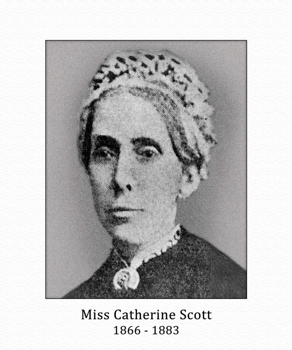 The Scott Hall is a memorial to her as well as Rev. John Scott, her brother, and his wife. It was said of Ms. Scott that her best memorial is the lives of the girls whom she inspired by her gentleness and devotion.